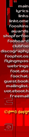 Welcome to the NEW Flying Foo. Better look and feel means better Foo.... better Foo means "Fuckin cool!" Uploaded more Mp3's... Check them out. --September 18, 2000--